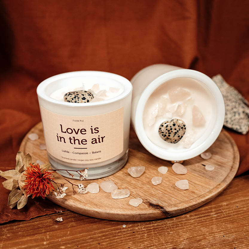 Pottie Pot geurkaarsen met edelstenen omhullen je met heerlijke geuren en benutten de helende krachten van edelstenen. Elke kaars bevat zorgvuldig geselecteerde edelstenen, zoals citrien voor geluk en amethist voor harmonie en ontspanning. Met een inspirerende tekst en met liefde vervaardigd, bieden de Pottie Pot kaarsen een luxe en persoonlijke ervaring.